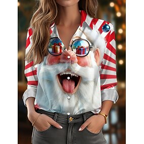 Christmas Naisten Paita Kuvitettu Joulupukki Tyylikäs Vintage Moderni Pitkähihainen Paitapuserokaula-aukko Tavalliset topit Työ Päivittäin Pyhäpäivä Valkoinen Viini Rubiini Punainen ja valkoinen