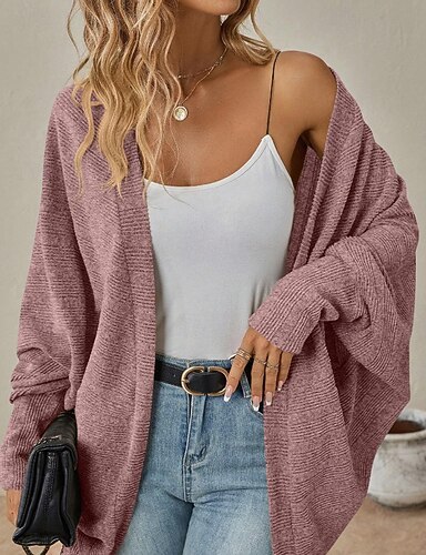 Naisten Neulos Neule Tyylikäs Muoti Katutyyli Puhdas väri Avoin etuosa Tasku Kudottu Pitkähihainen Tavalliset topit Neuloa ulko- Päivittäin Viikonloppu Punastuvan vaaleanpunainen Sininen Syksy Talvi