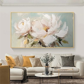 käsintehty käsinmaalattu öljymaalaus seinä abstrakti valkoinen kukkiva kukka öljymaalaus kankaalle alkuperäinen kultainen kukka akryylimaalaus moderni iso seinä taide sisustus valssattu kangas ei