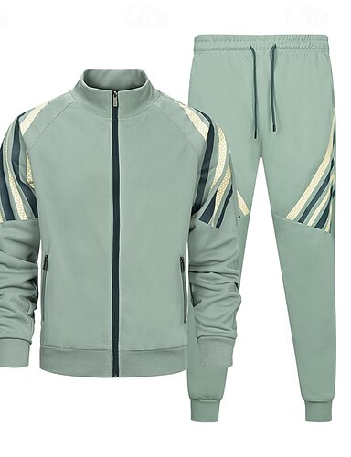 Miesten College Verryttelypuku Asusetti Stand-kaula-aukko ulko- Päivittäin Urheilu Kurenauha Tasku Raita Musta Khaki Harmaa Polyesteri Urheiluvaatteet Muoti Katutyyli Kevät