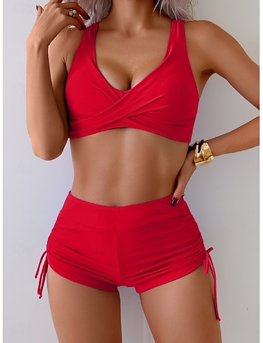 Naisten bikinit 2-osainen uimapuku rutistus tukivyö reilu hoikka selkä paljas lomaranta asu yksivärinen V-pääntie olkaimeton uimapuku