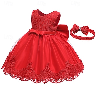Kukkaistytön asu Lapset Tyttöjen Prinsessa mekko Suoritus Häät Juhla Tyylikäs Kaunis Silmukka Yhtenäinen väri Hihaton Tiukka pyöreä kaula-aukko Punastuvan vaaleanpunainen Rubiini 4 vuotta +