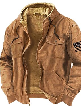 Miesten naamiointi Kantri Fleece Hupparit Päivittäin Vintage retro Pitkähihainen Hupullinen Pyhäpäivä Katuvaatteet Ruskea Vetoketju Tasku Syksy Talvi Suunnittelija S M L XL XXL XXXL
