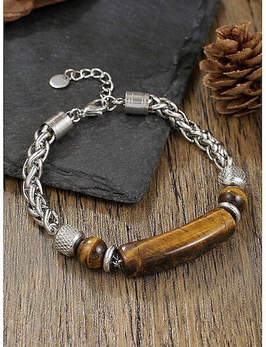 Miesten boheemi titaaniteräksestä ja luonnonkivestä valmistettu rannekoru, monivärinen helmiketjurannekoru rantalomaan, rentoon kesäasuihin ja jokapäiväiseen käyttöön