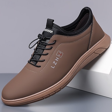 Miesten ruskeat keinonahkaiset vapaa-ajan lenkkarit – kevyet nauhalliset urheilukengät kävelyyn, matkustamiseen ja jokapäiväiseen käyttöön