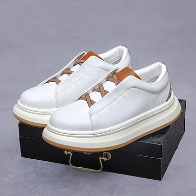 Miesten slip-on-lenkkarit - keinonahkaiset vapaa-ajan matalavartiset kengät, joissa on joustava nauhaton muotoilu, kontrastinväriset ruskeat yksityiskohdat ja paksu pohja urbaaniin katutyyliin,