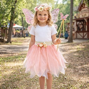 Setti Keskiaika Renessanssi mieltymys Polvipituinen Siivet Päähine Tylli hame lisävarusteiden kanssa keijukainen Naamiaispuku Tyttöjen Fantasia Halloween Karnevaali Lasten päivä Juhla Suoritus