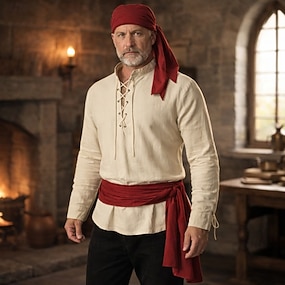 Setti Retro / vintage Keskiaika Renessanssi Päähine Vyötärövyö Pusero lisävarusteiden kanssa Pitkähihainen Merirosvo Pyöreä kaula-aukko Naamiaispuku Miesten Halloween Karnevaali Renessanssin messut
