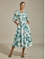 Naisten Löysä mekko Resort Wear Midimekko Apila Puolihiha Lehdet Tulostus Kevät kesä Paitapuserokaula-aukko Loma Vapaa-aika XS S M