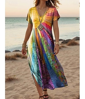 naisten maxi pitkä mekko rento mekko kesämekko printti mekko muoti katuvaatteet ulkoloma päivittäin print lyhythihainen v kaula mekko normaali istuvuus musta valkoinen pinkki kesä kevät s m l xl xxl