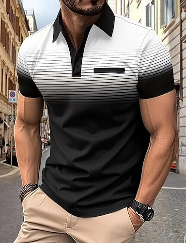 Miesten Kaltevuus Polo Poolopaidat Lyhythihainen Poolopaidat Kauluspaidat Business Casual ulko- Urheilu- ja treenivaatteet Arki-asut 3D-tulostus Napit Kevät kesä Sininen Musta Purppura