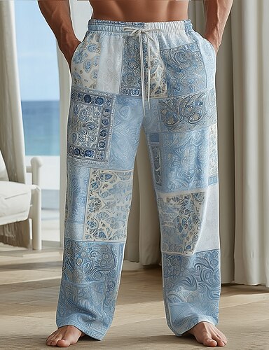 Miesten Geometrinen printti Etninen Housut Rennot housut Roikkuvat housut Keskivyötärö Vintage retro Koti ulko- Loma Joustava kiristysnyöri vyötäröllä Pellavamaiset housut taskuilla Kesä Kevät