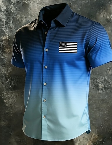 Miesten Yhdysvaltain 250-vuotisjuhla 4. heinäkuuta Kaltevuusväri Yhdysvaltain lippu Paita Button Up paita Lyhythihainen Patriotismi ulko- Pyhäpäivä Kesä Kevät Sänkyjen avaus 3D-tulostus kauluspaidat