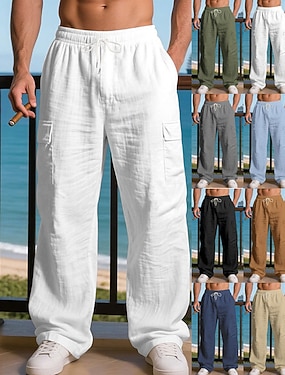 Miesten Pellavahousut Lastin lenkkeilijät Housut Kesähousut Rantahousut Kurenauha Joustava vyötärö Monitasku Tavallinen Mukavuus Hengittävä Kausaliteetti Päivittäin Pyhäpäivä Muoti Klassinen tyyli