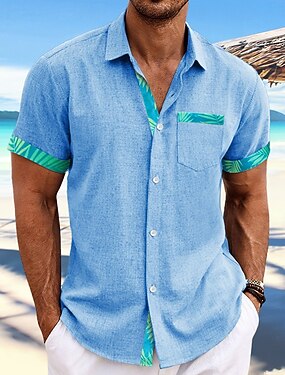 Miesten Paita Pellava paita Kesä paita Rantapaita Button Up paita Kausaliteetti Pyhäpäivä Punastuvan vaaleanpunainen Taivaan sininen Apila Beesi Lyhythihainen Sänkyjen avaus Kesä Vaatetus Edessä tasku
