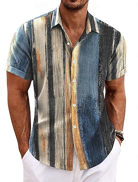 Miesten Paita pellava paita retro paidat Vintage paita Etninen paita Raidoitettu Muodollinen ulko- Sininen Lyhythihainen Sänkyjen avaus Kesä Vaatetus
