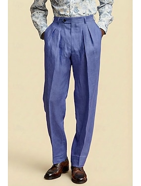 Miesten Puuvillainen pellava Puvunhousut Juhla Taivaan sininen Beesi Yhtenäinen väri Normaali istuvuus Pitkä Joustamaton