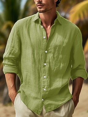 Miesten Paita Pellava paita Kesä paita Ranta-asut Tavallinen Loma Kausaliteetti Musta Valkoinen Sininen Vihreä Pitkähihainen Kauluskäänne Kevät kesä Vaatetus