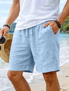 Miesten Shortsit Liinavaatteet Kesähousut Rantahousut Kurenauha Joustava vyötärö Tavallinen Mukavuus Hengittävä Lyhyt Päivittäin Loma Pyhäpäivä Muoti Retro / vintage Sininen Musta Joustamaton