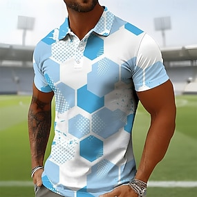 Miesten Kuvitettu 100% Cotton Poolopaidat Happopesupaita Lyhythihainen Poolopaidat Kauluspaidat Havaijilainen Vapaa-aika ulko- Pyhäpäivä Lomavaatteet 3D-tulostus Napit Kevät kesä Sininen Purppura