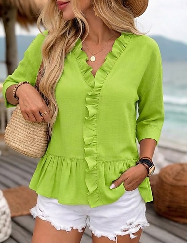 Naisten Paita Kesä paita Rento paita Sifonki Topit Röyhelö Napit Yhtenäinen väri Tavallinen Tyylikäs Vintage Muoti Lyhythihainen V kaula-aukko Tavalliset topit Päivittäin Pyhäpäivä Bile Viini Kes
