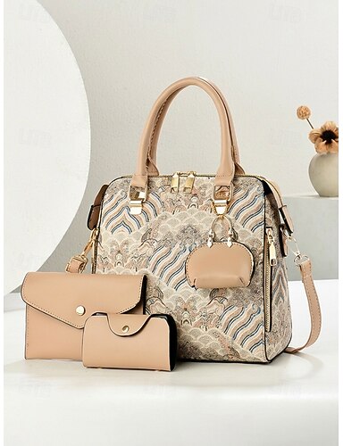 naisten kirjailtu kuviollinen keinonahkainen olkalaukkusetti, monivärinen 3-osainen äiti-tytär-laukkusetti juhliin, töihin, työmatkoille ja jokapäiväiseen tyylikkääseen käyttöön
