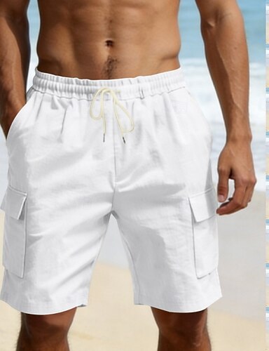 Miesten Puuvillaiset pellavashortsit Shortsit Kesähousut Rantahousut Kurenauha Tasku Joustava vyötärö Tavallinen Mukavuus Hengittävä Polven pituus ulko- Hiekkaranta Loma Loma Muoti Musta Valkoinen