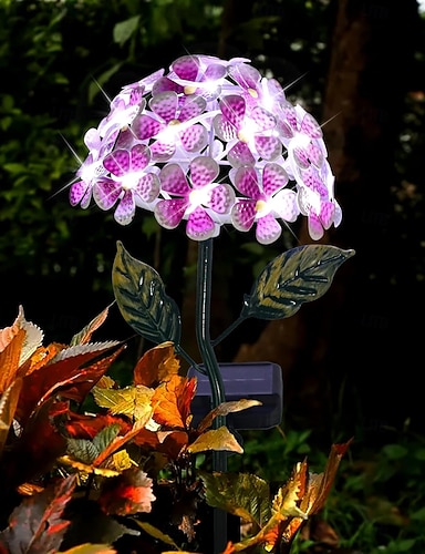 Aurinkoenergialla toimiva metallinen kukkakeppivalo, aurinkokennolla toimiva hortensia-LED-valo, metallinen maahan kiinnitettävä varsi, ulkokukkakenttien koristeet puutarhaan, terassille, kävelytielle