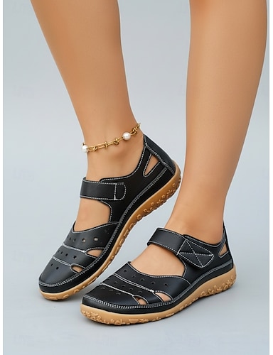 naisten mustat avokkaat, mukavat litteät kengät liukumattomalla pohjalla, säädettävät taikanauhahihnat, vapaa-ajan jalkineet puutarhaan, rannalle &kesäaktiviteetit