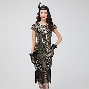 Möly 20s 1920-luku Polvipituinen Mekko Asut Tarvikesarja Lyhyet hihat Suuri Gatsby Häävieras Paljetti Tupsu Paljetti Tupsu V kaula-aukko Naamiaispuku Naisten Karnevaali Naamiaiset Karnevaali