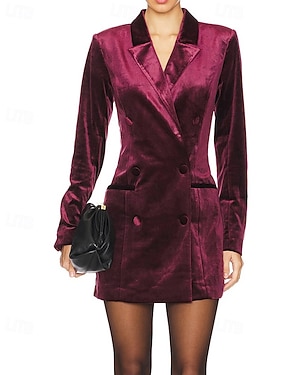 Naisten Mini mekko Velvet mekko Juhlamekko Coctail-asu Bleiserimekko Tyylikäs Muoti Iltajuhlat Juhla Cocktailjuhla Normaali Tavallinen Pitkähihainen Paitapuserokaula-aukko Musta Viini Tumman vihreä