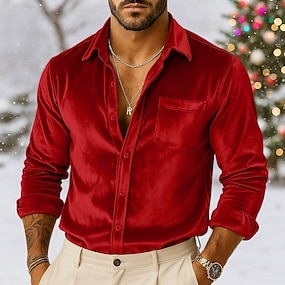 Miesten Paita Rento paita Joulupaita Samettipaita Viini Kuninkaallinen sininen Ruskea Apila Pitkähihainen Yhtenäinen väri Tavallinen Paitapuserokaula-aukko Karnevaali Joulu Tasku Vaatetus Sametti
