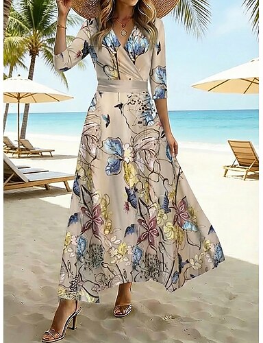 Naisten Maksimekko Kesämekko Rantamekko A linjainen mekko Kukka mekko Vapaa-aika Päivittäin Normaali Kukka 3/4 hiha V kaula-aukko Valkoinen Samppanja Rubiini Kevät Syksy