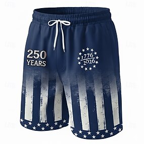 Miesten Yhdysvaltain 250-vuotisjuhla 4. heinäkuuta Yhdysvaltain lippu 1776 Uimahousut Uimashortsit Surffishortsit Keskivyötärö Patriotismi Pyhäpäivä Sivutaskut Verkkovuori Joustava kiristysnyöri