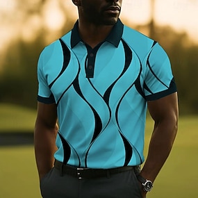Miesten Geometrinen Viiva Vetoketjulliset poolopaidat Lyhythihainen Poolopaidat Kauluspaidat Business Casual liiketoiminta Urheilu- ja treenivaatteet Käytä töihin Arki-asut 3D-tulostus Kesä Sininen