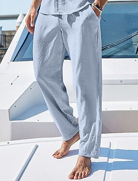 Miesten Pellavahousut Housut Kesähousut Laskokset Tavallinen Mukavuus Hengittävä Täyspitkä Kausaliteetti Päivittäin Pyhäpäivä Muoti Perus Valkoinen Sininen