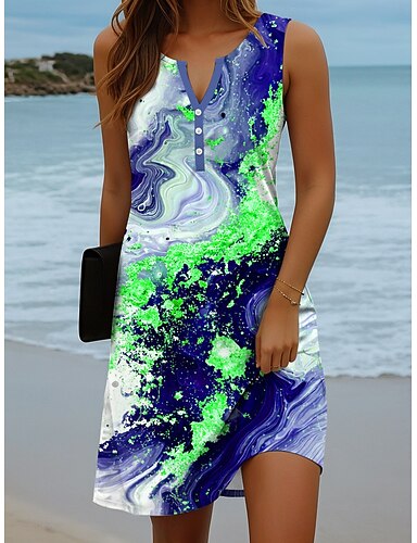 Naisten Mini mekko Väljä mekko Kesämekko Loma Vapaa-aika Boheemi Päivittäin Hiekkaranta Pyhäpäivä Normaali Kuvitettu Abstrakti Hihaton Lovitettu kaula Sininen Syvä vihreä Purppura Apila Kesä Kevät