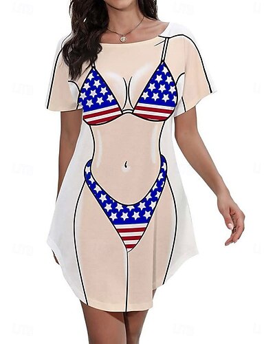Itsenäisyyspäivä Naisten Mini mekko Rantamekko Rento mekko Tpaitamekko Peittää Muoti Moderni Hiekkaranta Loma Viikonloppu Normaali Maalaus Lyhythihainen Tiukka pyöreä kaula-aukko Sininen Musta Rubiini