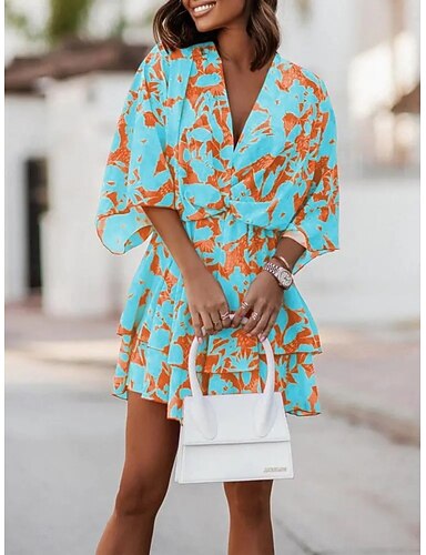 Naisten Minimekko Mini mekko Boho-mekko Vintage mekko Rento mekko Tyylikäs Muoti Moderni ulko- Loma Bile Normaali Loose Fit Kuvitettu Lyhythihainen V kaula-aukko Sininen Valkoinen Keltainen