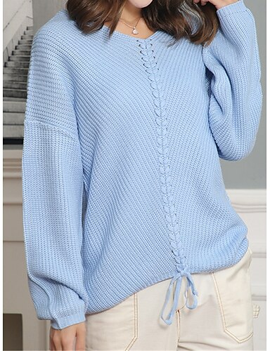Naisten Pusero Vapaa-aika Yhtenäinen väri Paksu V kaula-aukko Kudottu Reikä Pitkähihainen Tavalliset topit Neuloa Päivittäin Pyhäpäivä Bile Valkoinen Sininen Kesä Syksy