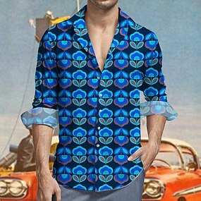 Retro / vintage 1970 luku Pusero Havaijilaispaita Hippi Disko Geometrinen Naamiaispuku Miesten Naamiaiset Loma Juhla Pride-paraati Aikuisten Pusero