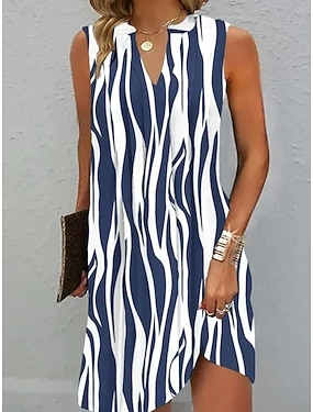 Naisten Mini mekko Väljä mekko Vapaa-aika Katu Pyhäpäivä Normaali Kuvitettu Raita Hihaton V kaula-aukko Sininen Musta Rubiini Apila Kesä Kevät Syksy