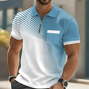 Miesten Geometrinen Poolopaidat Lyhythihainen Poolopaidat Kauluspaidat Business Casual ulko- Urheilu- ja treenivaatteet Pyhäpäivä Tasku 3D-tulostus Quarter Zip Polo Kevät kesä Sininen