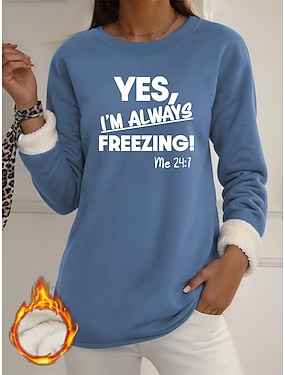 Naisten Fleecevuorattu collegepaita ja pyjama Pullover-huppari Pullover Puserot Painettu Kirjain Lämmin Katutyyli Vapaa-aika Pitkähihainen Tiukka pyöreä kaula-aukko Tavalliset topit Kausaliteetti