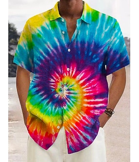Miesten Solmuvärjätty Paita Button Up paita Lyhythihainen Trooppinen Muoti Katutyyli Katu Päivittäin Bile Kesä Kevät Sänkyjen avaus Painettu Painike alas Musta + Musta Purppura Fuksia Ruskea Apila