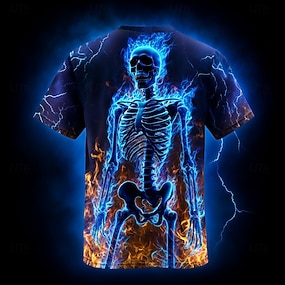 Miesten 3D Print Helvetin liekit 3D Luuranko T-paita Lyhythihainen T-paita 3D-tulostus Tiukka pyöreä kaula-aukko Paita Liioiteltu Suunnittelija Kauhu Juhla Katu Pyhäpäivä Sininen Oranssi Oranssi 2