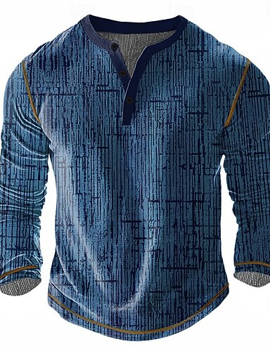 Miesten Geometrinen Abstrakti Henley-paita Vohveli T-paita Pitkähihainen Vintage Päivittäin Retro / vintage Urheilu ja ulkoilu Kausaliteetti Pyhäpäivä Kevät kesä Kaikki vuodenajat Harmaa Sininen