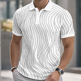 Miesten Geometrinen Viiva Poolopaidat Lyhythihainen Poolopaidat Kauluspaidat Vapaa-aika ulko- Urheilu- ja treenivaatteet Arki-asut 3D-tulostus Napit Kevät kesä Sininen Rubiini Purppura