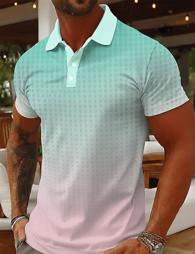 Miesten Kaltevuus Geometrinen Poolopaidat Lyhythihainen Poolopaidat Kauluspaidat Vapaa-aika Urheilu- ja treenivaatteet Arki-asut 3D-tulostus Napit Hengittävä verkkokangas Kevät kesä Sininen Ruskea