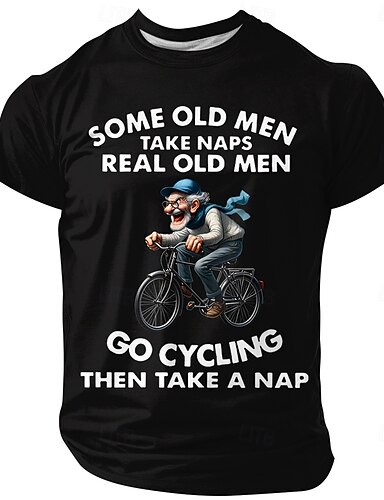 miesten oikeat vanhat miehet pyöräilevät ja ottavat sitten torkut hauska sarjakuva vanha mies pyöräilee pyöräilyn rakastaja t-paita graafinen pyöreä kaula-aukkoinen lyhythihainen syntymäpäivälahja